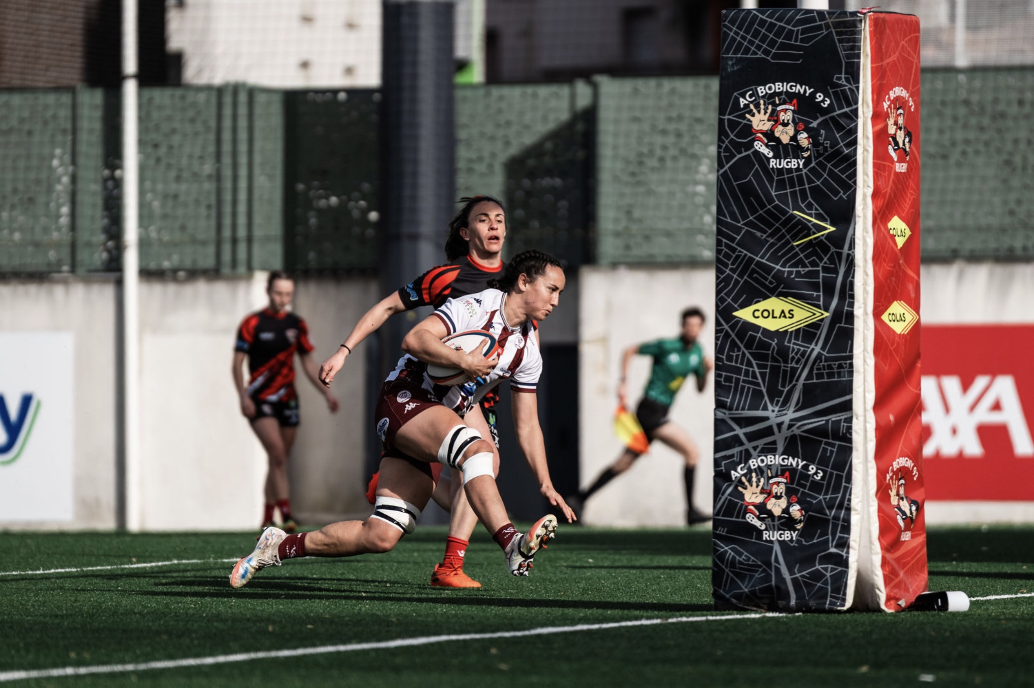 Malgré une opposition déterminée, les Bordelaises restaient appliquées. À la 30ᵉ minute, A. Deshaye concluait un temps fort collectif, avec une nouvelle transformation de M. Bourgeois.